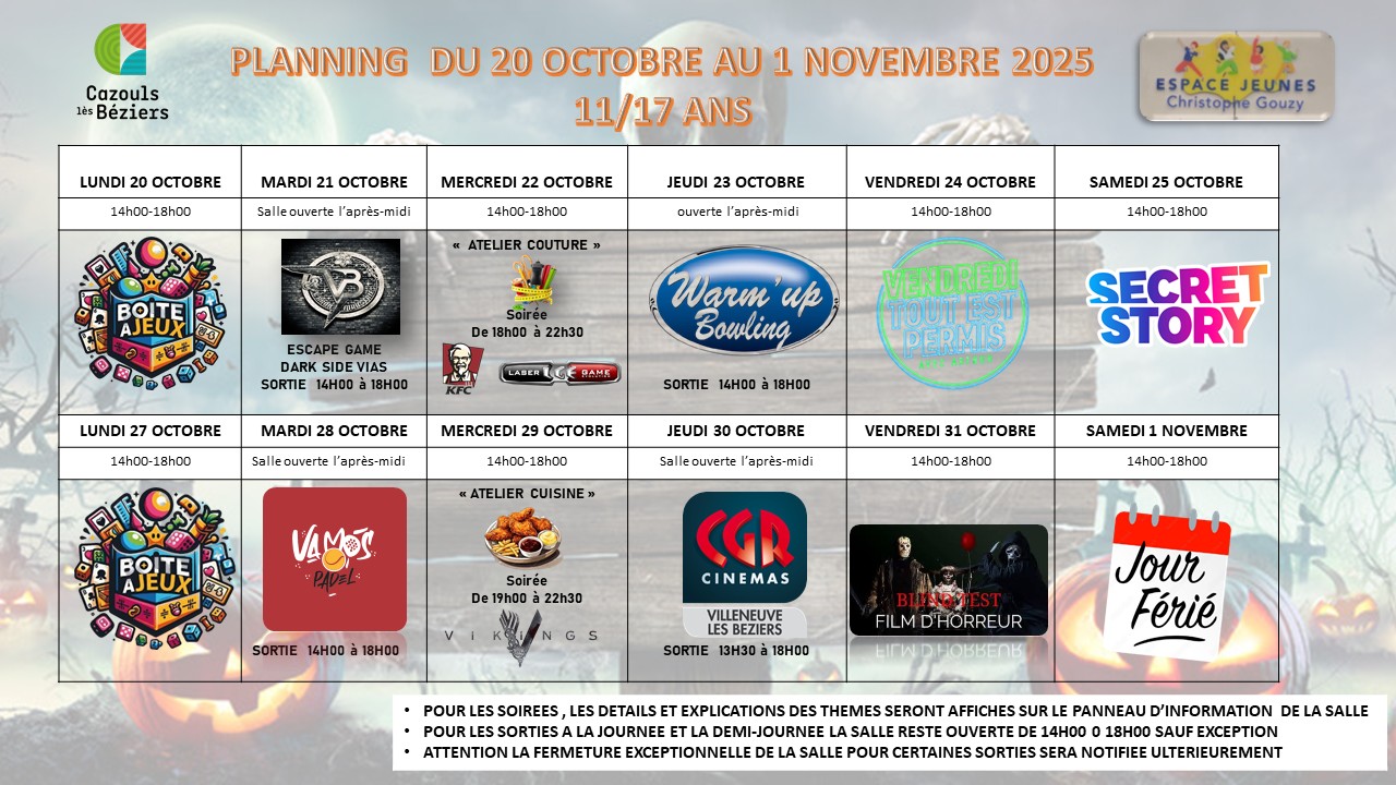 Billard, ping-pong, baby foot, wii, playstation, jeux de sociétés, ateliers cuisine et création manuelle, soirées à thème. Sorties toute l'année pendant les vacances scolaires : ski, patinoire, karting, bowling, ciné, piscine, aqualand, acrobranches, tournois de foot, spectacles, matchs de foot à Marseille, sorties plage et nature, camps et séjours à thème...