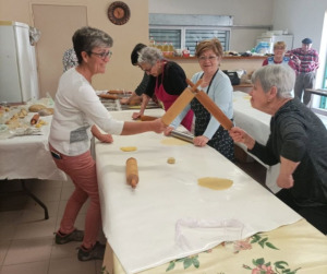 Dès jeudi, une quarantaine de personnes se sont mobilisées dans la bonne humeur pour confectionner des oreillettes. Un véritable travail d’équipe qui a rendu possible l’élaboration de 1700 beignets pour la bonne cause et pour le plus grand plaisir des gourmands.