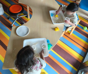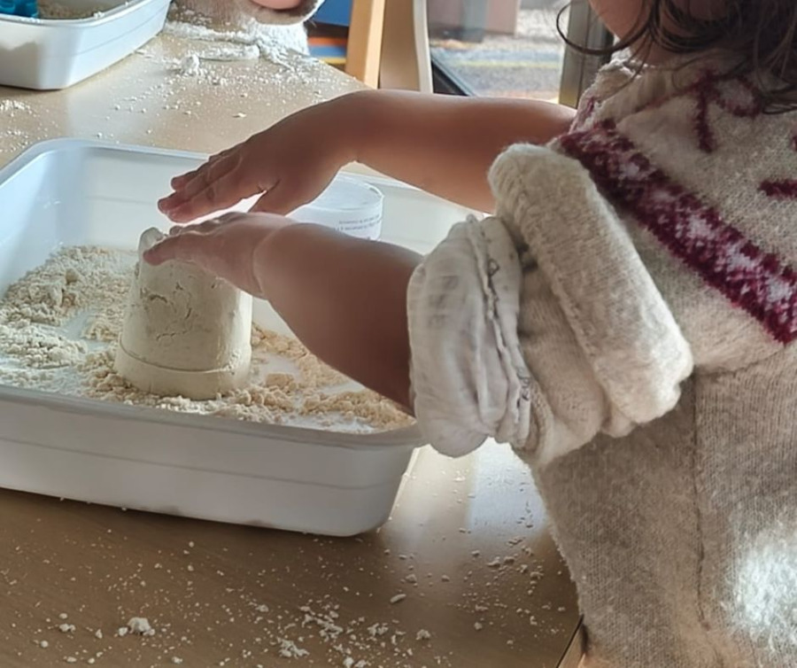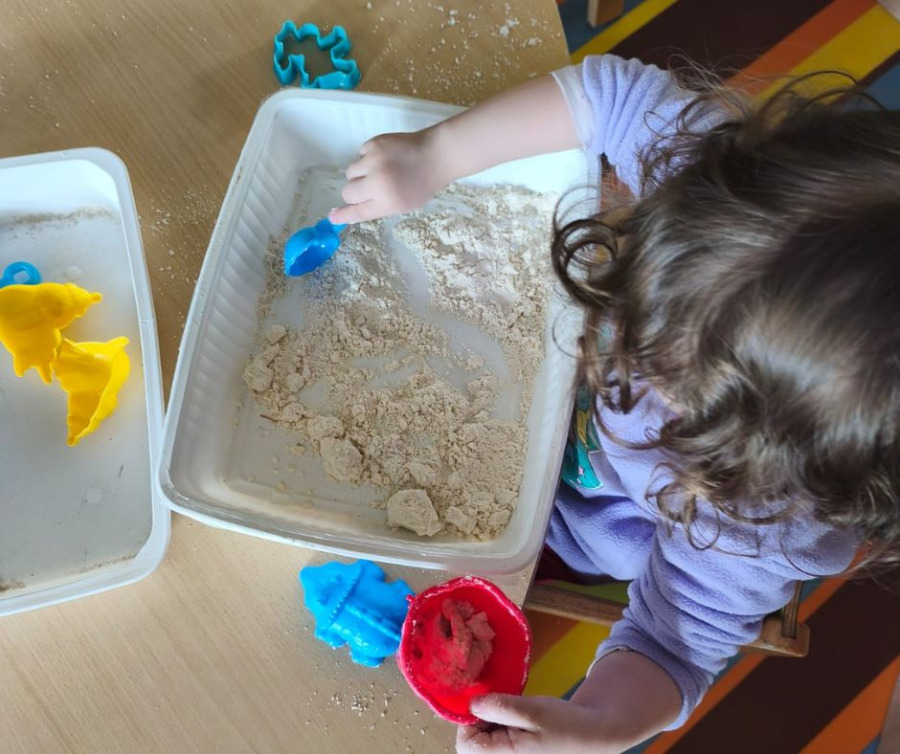 Des ateliers manuels « sable magique », à base de produits naturels, s’inscrivent dans cette volonté. En sculptant cette matière douce avec ses mains ou à l’aide d’outils, l’enfant affine ses gestes et développe son imagination.