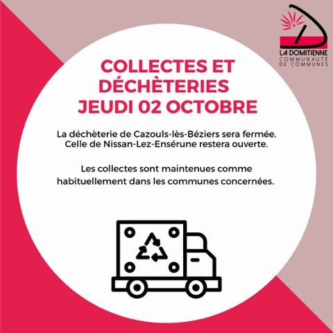 La déchèterie de Cazouls-lès-Béziers sera fermée. Celle de Nissan-Lez-Ensérune restera ouverte.