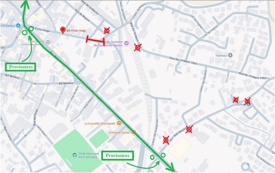 La circulation sera interdite sur le Boulevard Victor Hugo entre le lotissement des Bastides et la rue de Verdun :