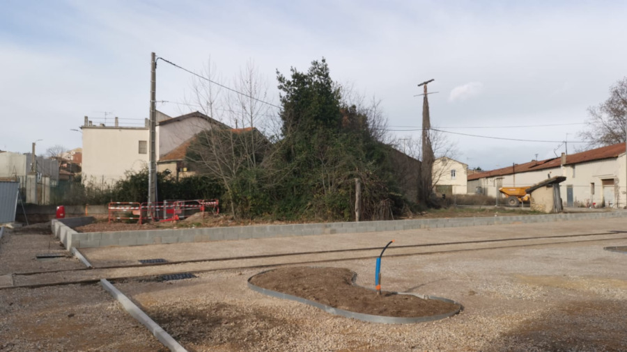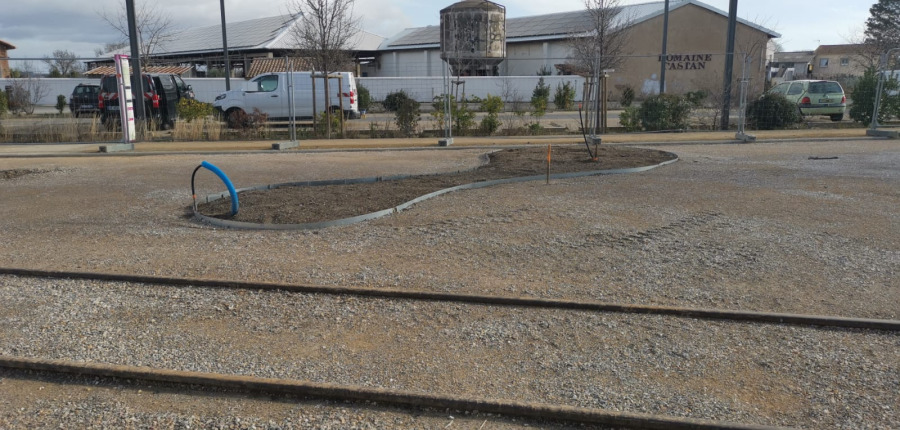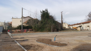 La réalisation du terrassement et des enrobées révèlent peu à peu le futur visage de cet espace ouvert et arboré, prochainement accessible aux habitants.