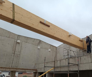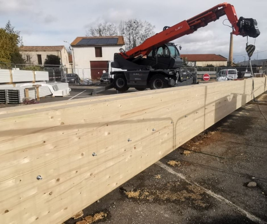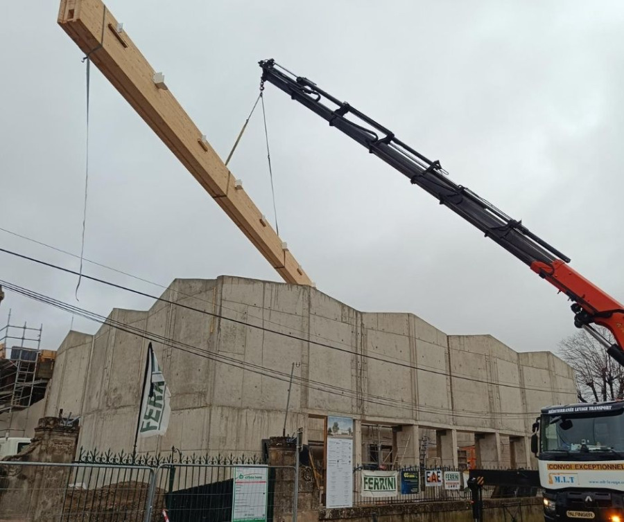Ce jeudi 15 janvier, la poutre destinée à soutenir la future toiture a été déposée dans l’extension du bâtiment, visible du Boulevard Victor Hugo. Le déplacement de cette pièce de charpente d'environ 3 tonnes et de 21 mètres était une intervention d'envergure pour notre partenaire.