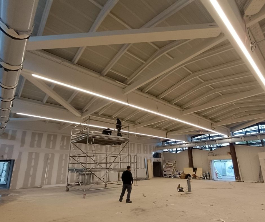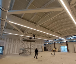 En parallèle, la pose des éclairages LED est en cours dans la salle principale.