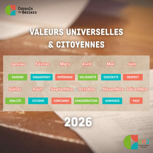 La commission « Éducation à la Citoyenneté » a le plaisir de présenter les valeurs universelles et citoyennes qui rythmeront l’année 2026.