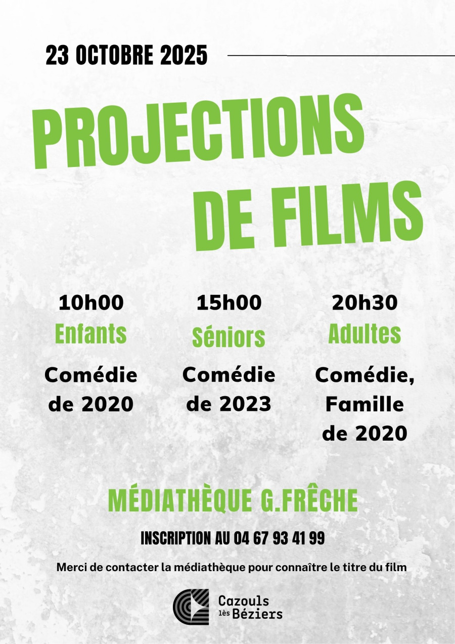 Pour connaître le film et réserver, contactez la médiathèque au 04 67 93 41 99.