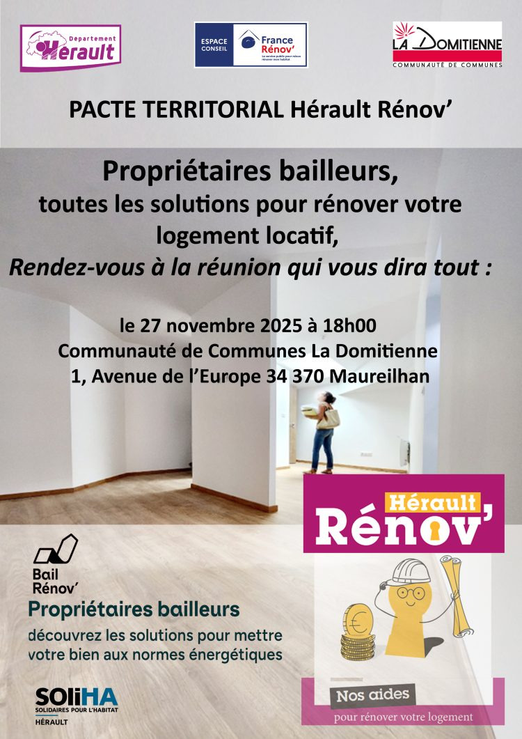 Propriétaires bailleurs, toutes les solutions pour rénover votre logement locatif, rendez-vous à la réunion qui vous dira tout.